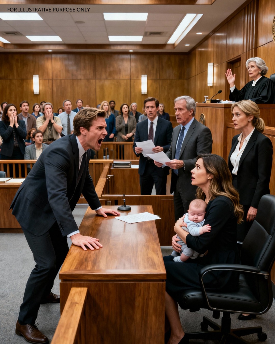 En nuestra audiencia de divorcio, mi esposo me señaló con nuestro hijo en brazos y dijo: “Toma a tu hijo y vete”, pero en el momento en que el juez leyó mi herencia, todo el tribunal se quedó en silencio… y su confianza se derrumbó.