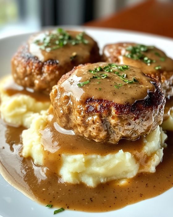 Filete Salisbury en olla de cocción lenta con salsa de ajo y hierbas