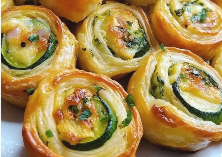 Deliciosos rollitos de hojaldre con calabacín, jamón y galbanino