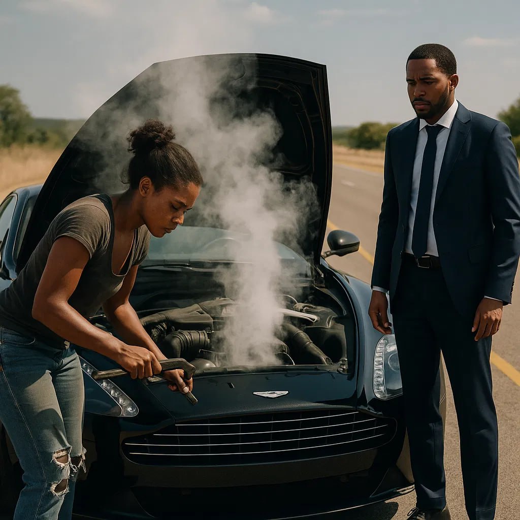 Era una sofocante tarde de verano en Atlanta, Georgia. El calor se reflejaba en el asfalto como un espejismo, y el aire olía ligeramente a goma caliente y aceite de motor. Los coches pasaban zumbando por un largo tramo de autopista, donde un elegante Aston Martin negro permanecía en silencio en el arcén, con la capota levantada y el vapor elevándose hacia el cielo.