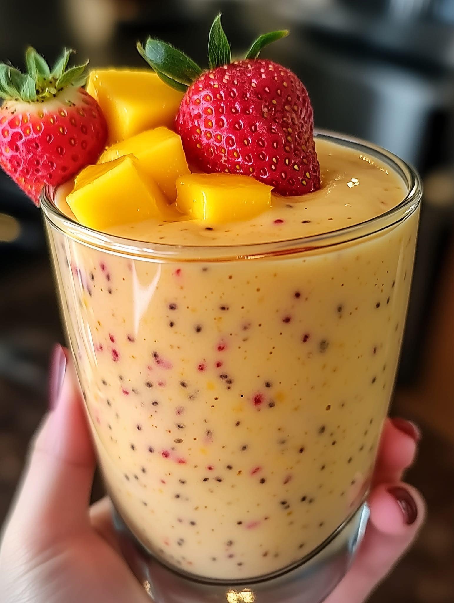 ¡Un delicioso y refrescante batido lleno de frutas tropicales y nutrientes!