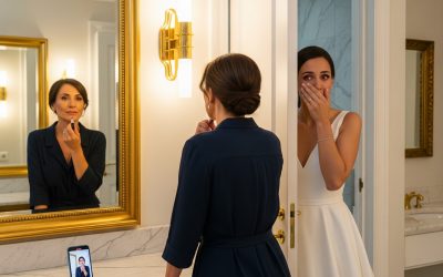 A pocos minutos de caminar hacia el altar para casarme con el hombre que creía amar, me refugié en el baño intentando controlar los nervios. Por fin empecé a respirar con calma… hasta que alguien entró y dejó su móvil en altavoz. La voz que salió del teléfono me heló la sangre: era una voz demasiado familiar, demasiado íntima. Pero lo que dijo después… rompió todo lo que yo pensaba que sabía sobre mi futuro esposo. En un instante, mi mundo perfecto se convirtió en una mentira imposible de ignorar
