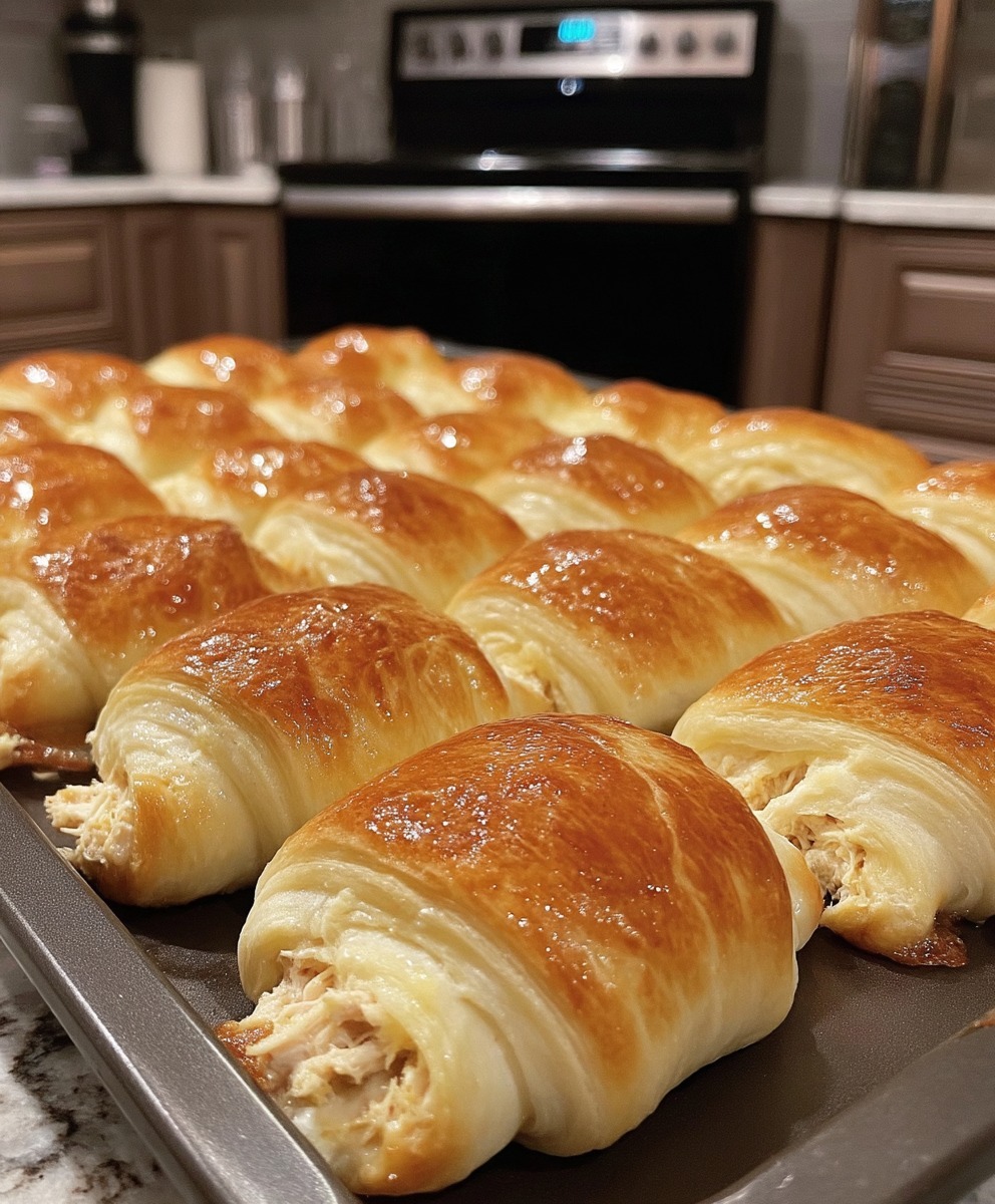 Rollitos de medialuna rellenos de pollo fáciles