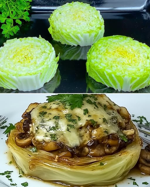 Transforme su repollo cotidiano en una extraordinaria comida baja en carbohidratos con estos tiernos y jugosos filetes de repollo chino. Este innovador plato combina la dulzura sutil del repollo con un sabroso relleno de pollo y hongos, todo cubierto con queso derretido para una opción de cena saludable y satisfactoria.