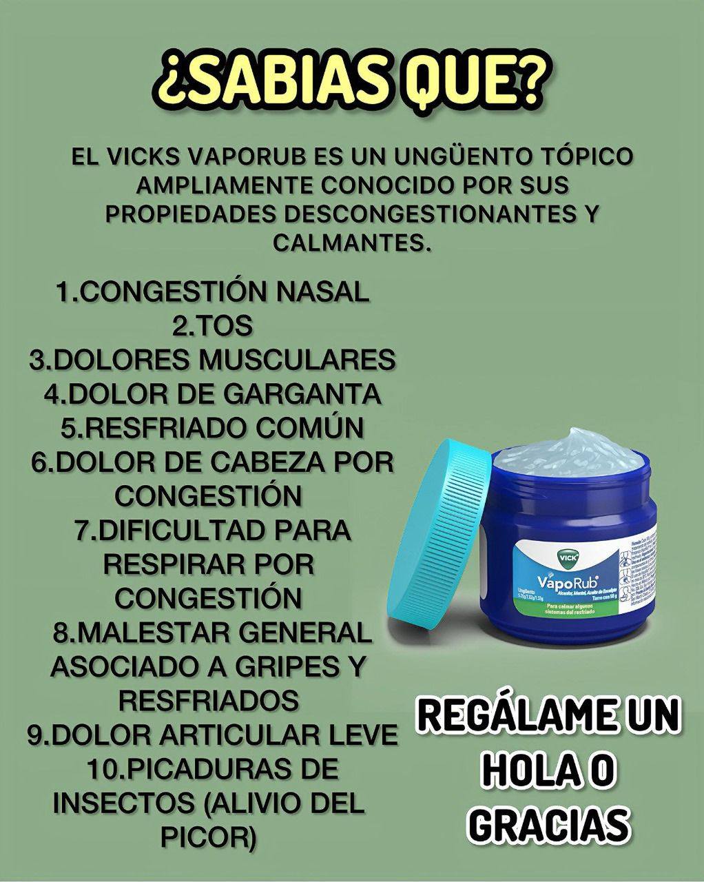 El Vicks VapoRub es un ungüento tópico con propiedades descongestionantes y calmantes que se utiliza para aliviar diversos malestares. Su fórmula a base de mentol, eucalipto y alcanfor brinda alivio temporal a síntomas comunes de resfriados, dolores musculares y otras molestias. Para aprovechar sus beneficios, es fundamental aplicarlo de forma adecuada.