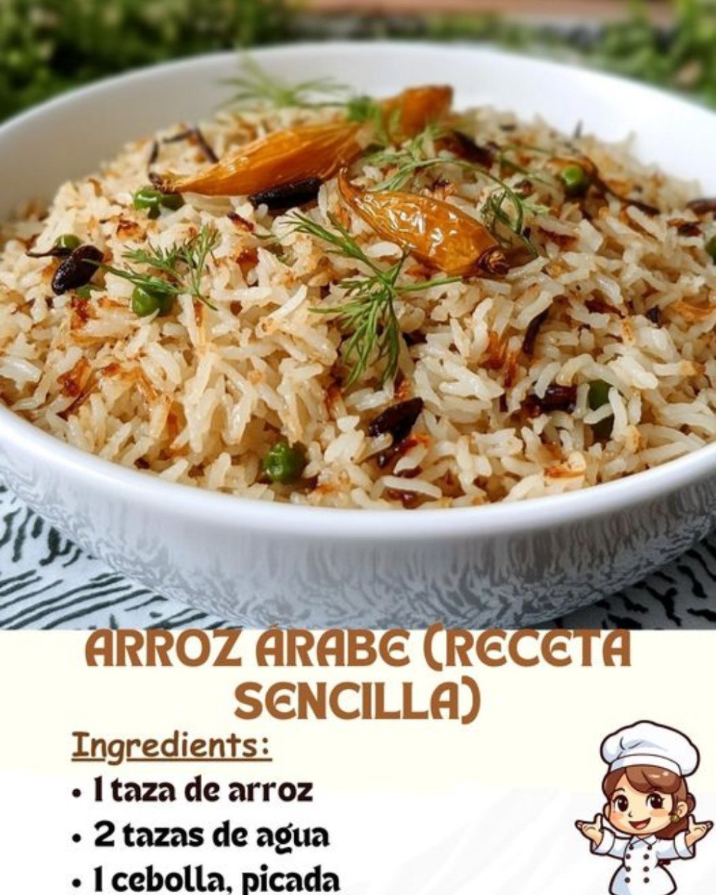 El arroz árabe es un plato lleno de sabor y textura, ideal para acompañar carnes, ensaladas o como plato principal. Su toque especiado y su aroma exótico harán que cada bocado sea una verdadera experiencia.
