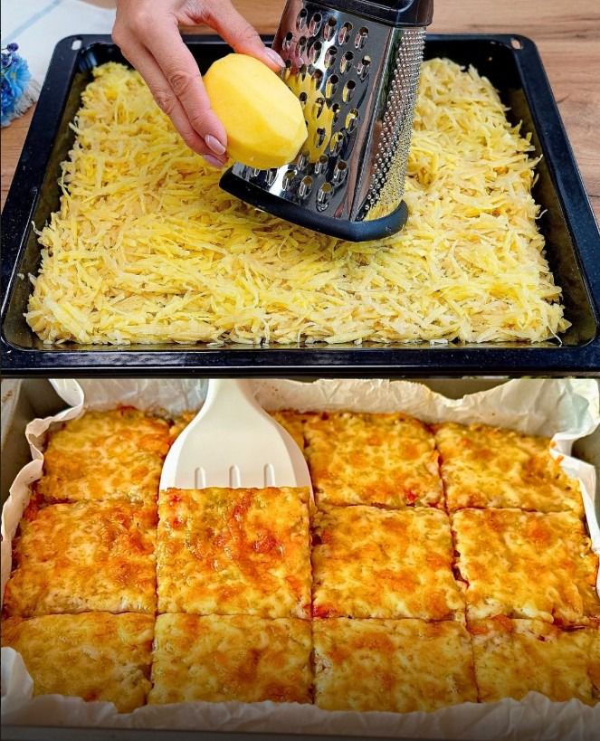 -Prepara las papas: Ralla las papas con un rallador grueso y colócalas en un paño limpio. Exprime bien para eliminar el exceso de líquido y evitar que el pastel quede aguado.