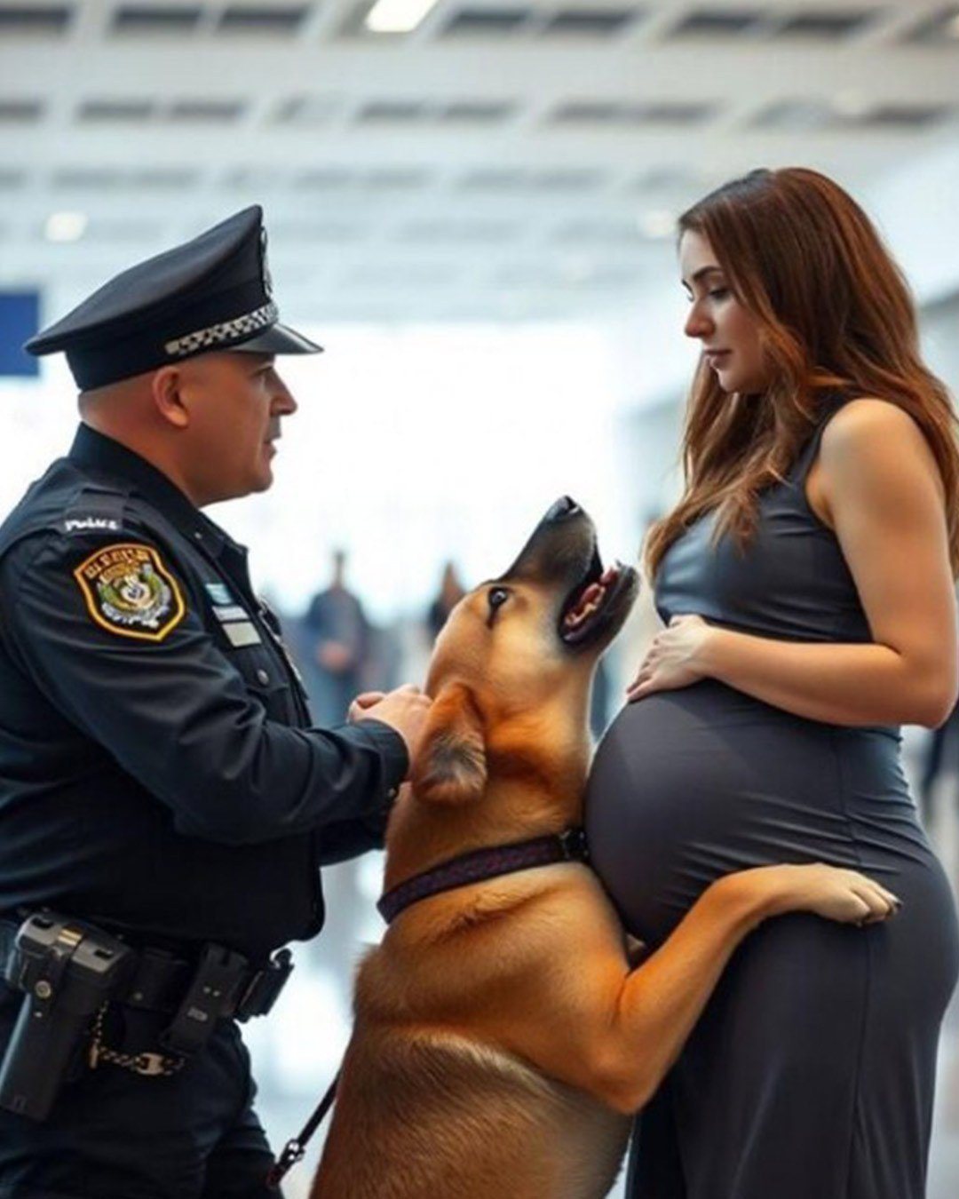 Ese día, todo parecía perfectamente normal en el aeropuerto. Los pasajeros desfilaban con sus maletas en mano, mientras los controles de seguridad seguían su ritmo habitual. Pero de repente, un suceso inesperado captó la atención de todos: un gran pastor alemán empezó a ladrar sin parar a una joven embarazada. ¿Qué estaba percibiendo?