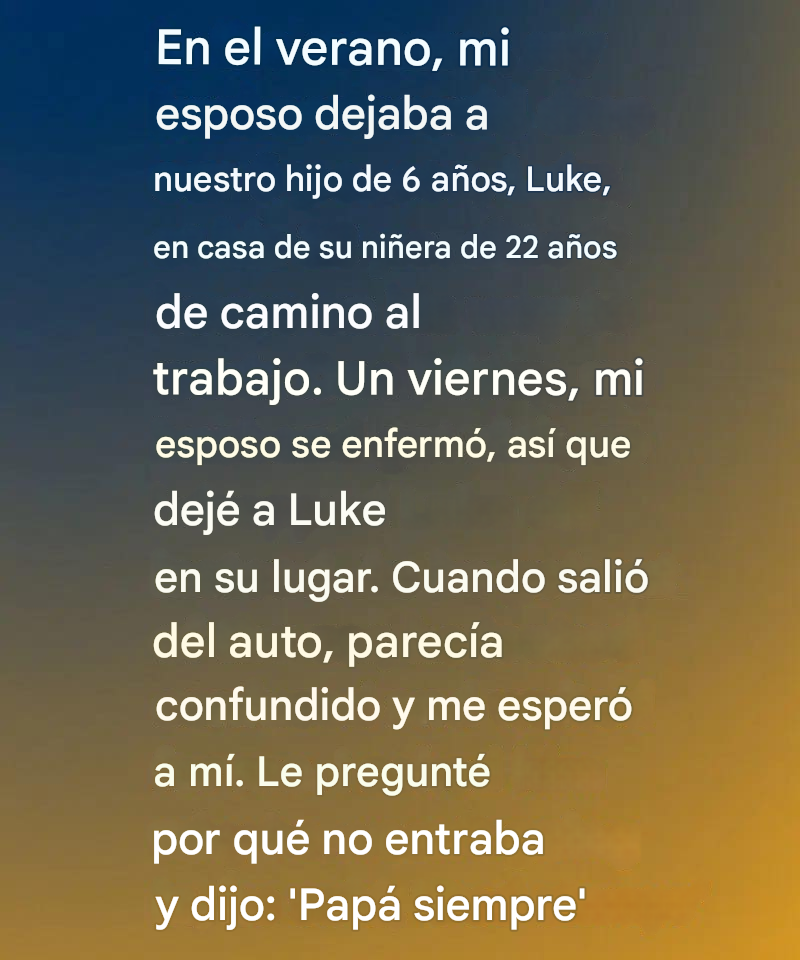 Cada mañana, llevaba a nuestro hijo Luke, de 6 años, a casa de la niñera de camino al trabajo.