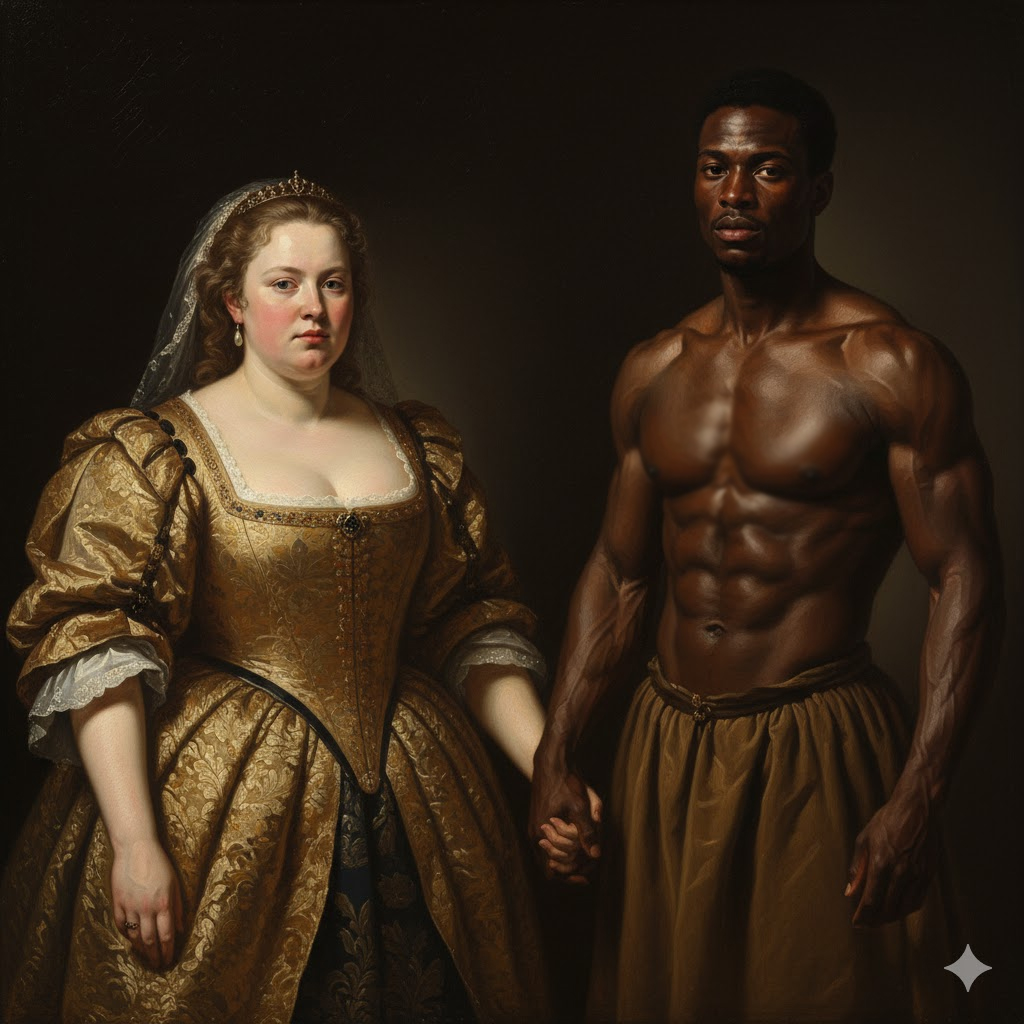 El mundo giró. Los ojos de la princesa se llenaron de lágrimas, pero no lloró, no imploró. Solo bajó la cabeza, tragándose el dolor, como siempre había hecho. A su lado, el esclavo, cuyo nombre nadie se molestó en preguntar, mantenía los ojos fijos en el suelo, como si quisiera desaparecer. El salón explotó en murmullos. Algunas damas disimulaban la risa; otros desviaban la mirada. Y el rey, satisfecho, como si finalmente se hubiera librado de un problema.