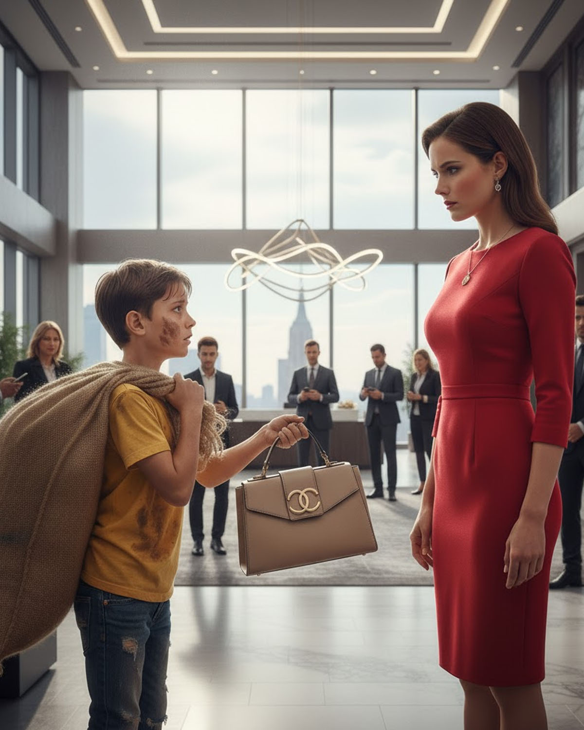 Un niño huérfano encontró una lujosa bolsa Gucci repleta de dinero, pero en lugar de tomarla eligió devolverla sin imaginar que pertenecía a una de las mujeres más ricas de la ciudad. Lo que ocurrió después te dejará sin palabras. El cielo de la ciudad estaba nublado y en la cima de uno de los rascacielos se encontraba Valeria. No era una mujer común.