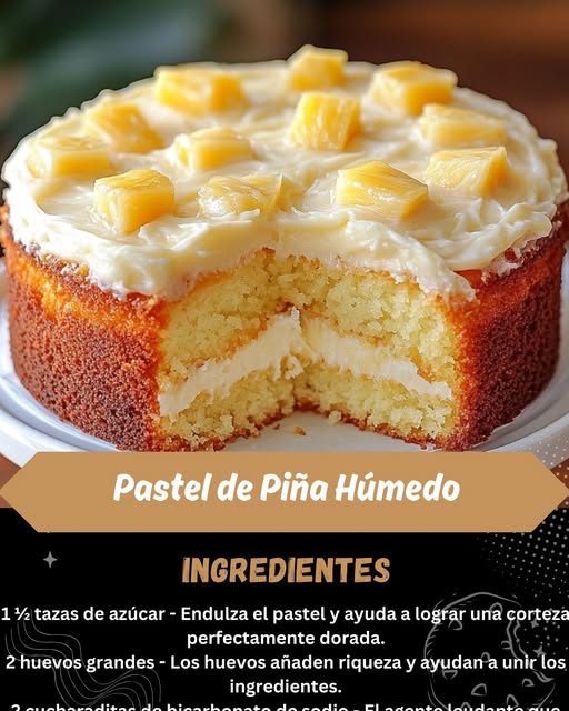 1 lata de piña (sin escurrir) – El jugo de la piña en lata agrega humedad al pastel y le da un sabor rico y tropical.
