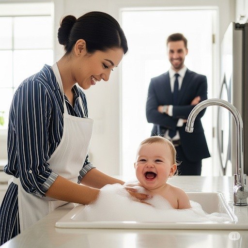 Pero ese día, ese día no quería contratos, ni lujos, ni discursos, solo anhelaba algo real, algo cálido. Su corazón le pedía volver a casa, sentirla respirar sin la tensión que su presencia siempre imponía. ver a su hijo, al pequeño Sion, su tesoro de 8 meses, aquel bebé de rizos suaves y sonrisa desdentada. La última luz que le había quedado tras perder a su esposa, no avisó a nadie, ni a su equipo, ni a Rosland. La niñera de tiempo completo quería ver la casa tal como era sin él, natural, viva.
